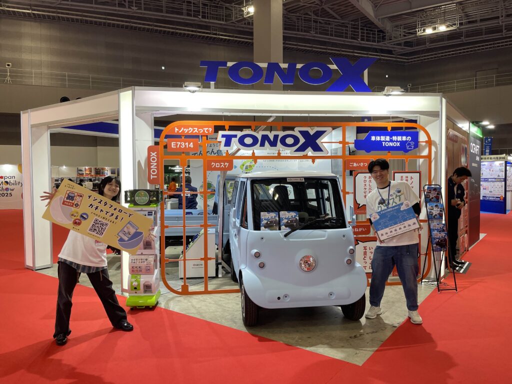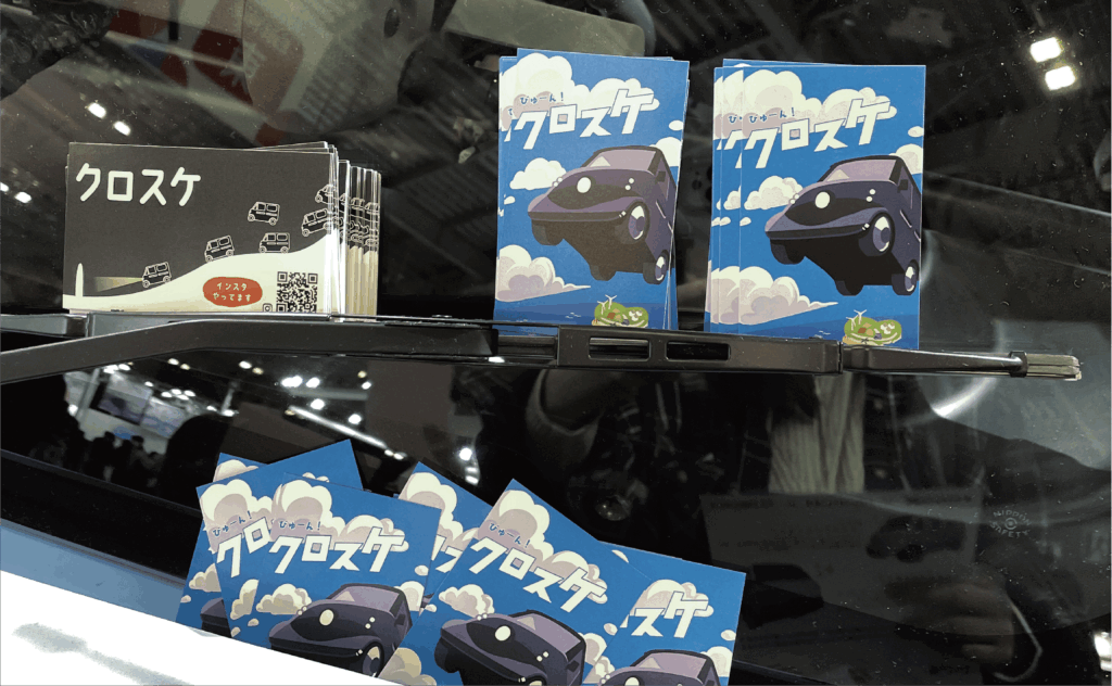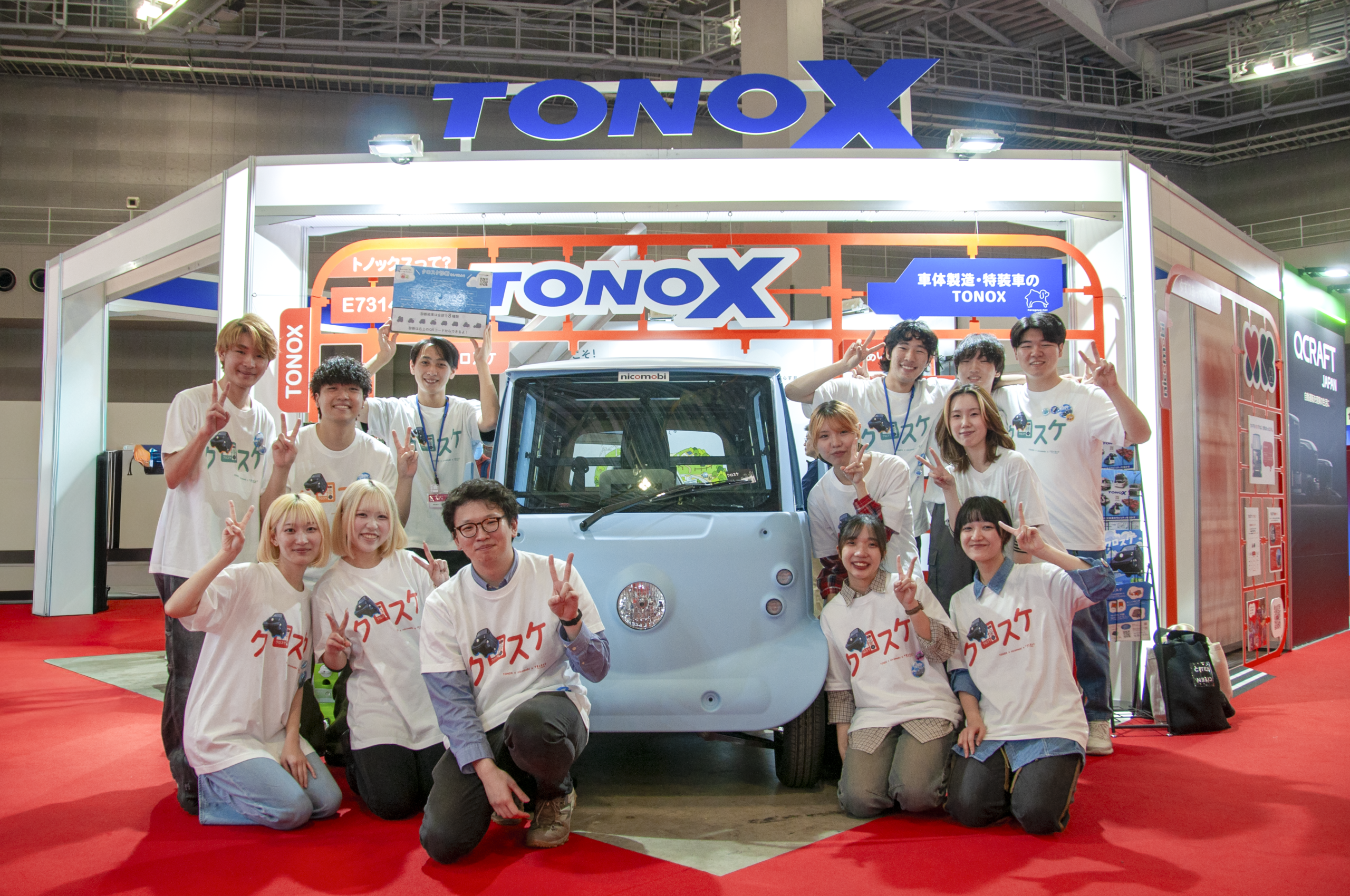 EV自動車開発プロジェジェクトは、2023年から始まった西田研究室とnicomobi株式会社が共同で「クロスケ」のサービスデザインに取り組む産学連携プロジェクトです。今回、プロジェクトの一環として、「クロスケ」の製造・組立を担うトノックスがJAPAN MOBILITY SHOW 2025に出展するブースのデザインやフライヤー、ノベルティグッズ、Tシャツなど、「クロスケ・そらまる」の未来世界を表現する展示物の制作を西田研究室の学生たちが担当させていただきました!
